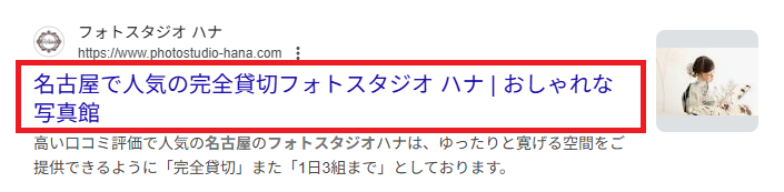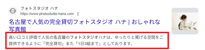 なので、descriptionタグには狙っているキーワードに加えて、あなたのフォトスタジオ・写真館の魅力を入れるようにしましょう。
